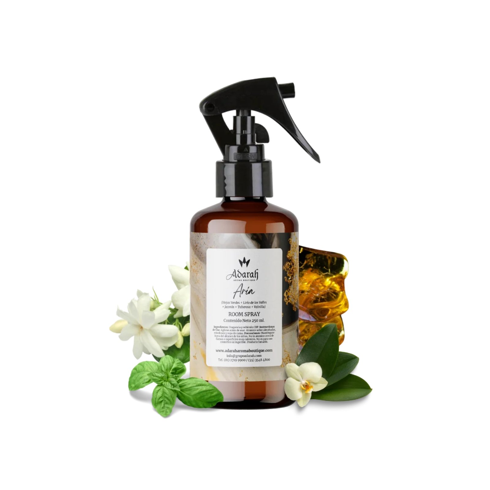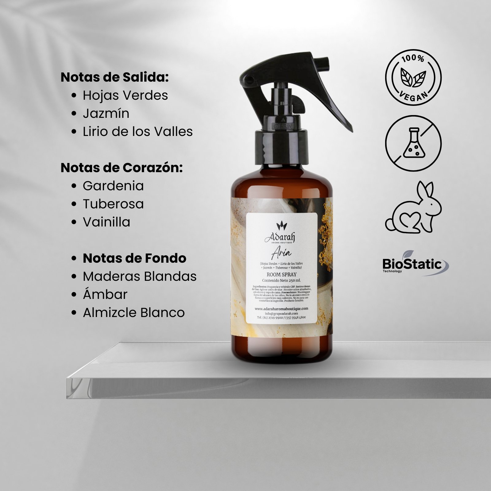 Aria: Inspirada en el Hotel Aria, esta es una mezcla floriental que crea un ambiente lujoso y envolvente. Sus notas altas son hojas verdes, jazmín y lirio de los valles, evolucionando a un corazón de gardenia, tuberosa y vainilla. Las maderas blandas, el ámbar y el almizcle blanco componen el fondo.
