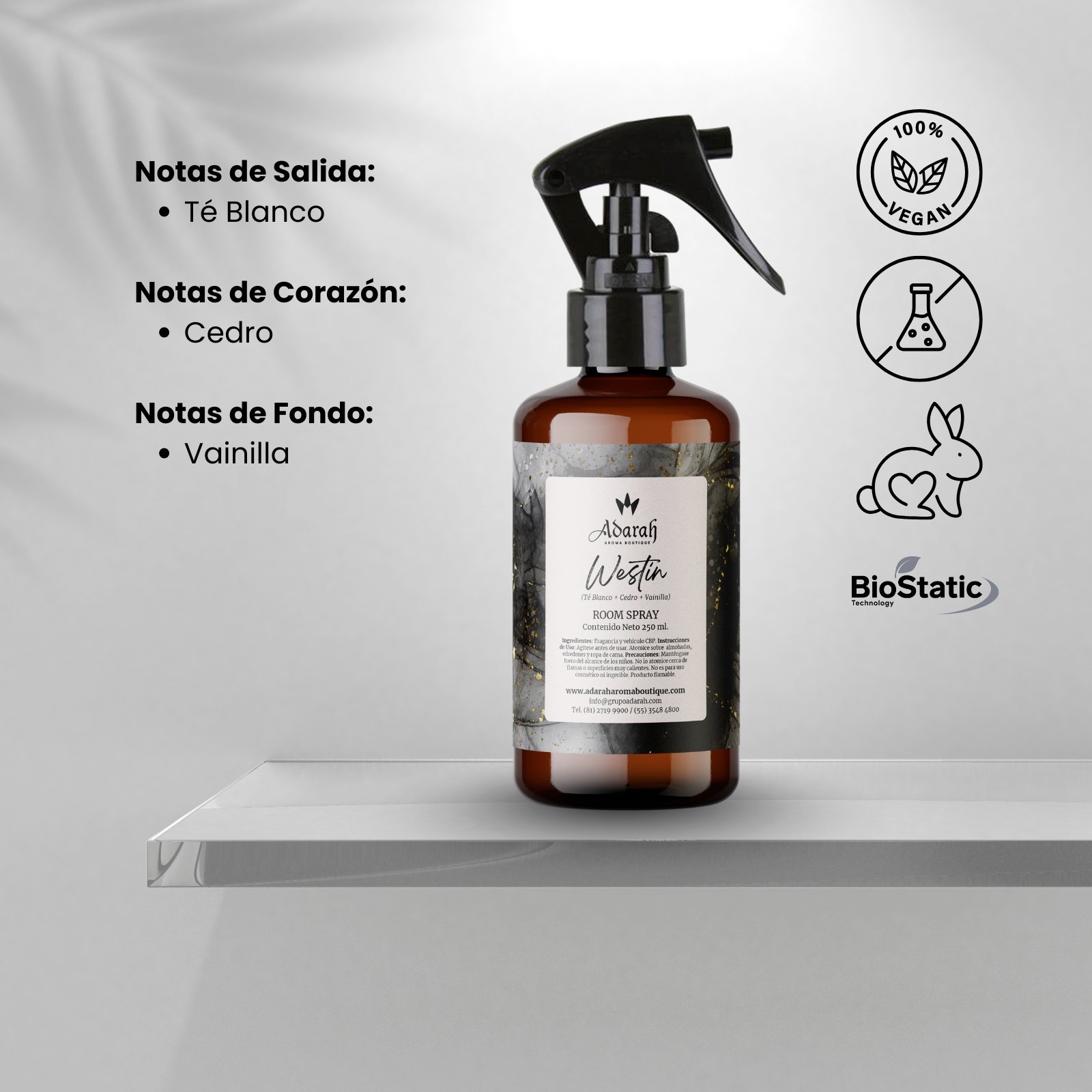 Westin: Inspirado en el Hotel Westin, esta fragancia es el aroma característico de la cadena. Es una esencia exótica, elegante y refrescante, que te da la bienvenida y te llena de energía. Sus notas clave son el té blanco, el cedro y la vainilla.